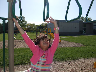 I have to laugh every time Hannah dresses herself. When we were leaving for the playground yesterday afternoon, I asked her to grab a sweatshirt since it was very windy. She appeared instead in the pink shrug that came with her Easter dress... she's always the girly-girl!!